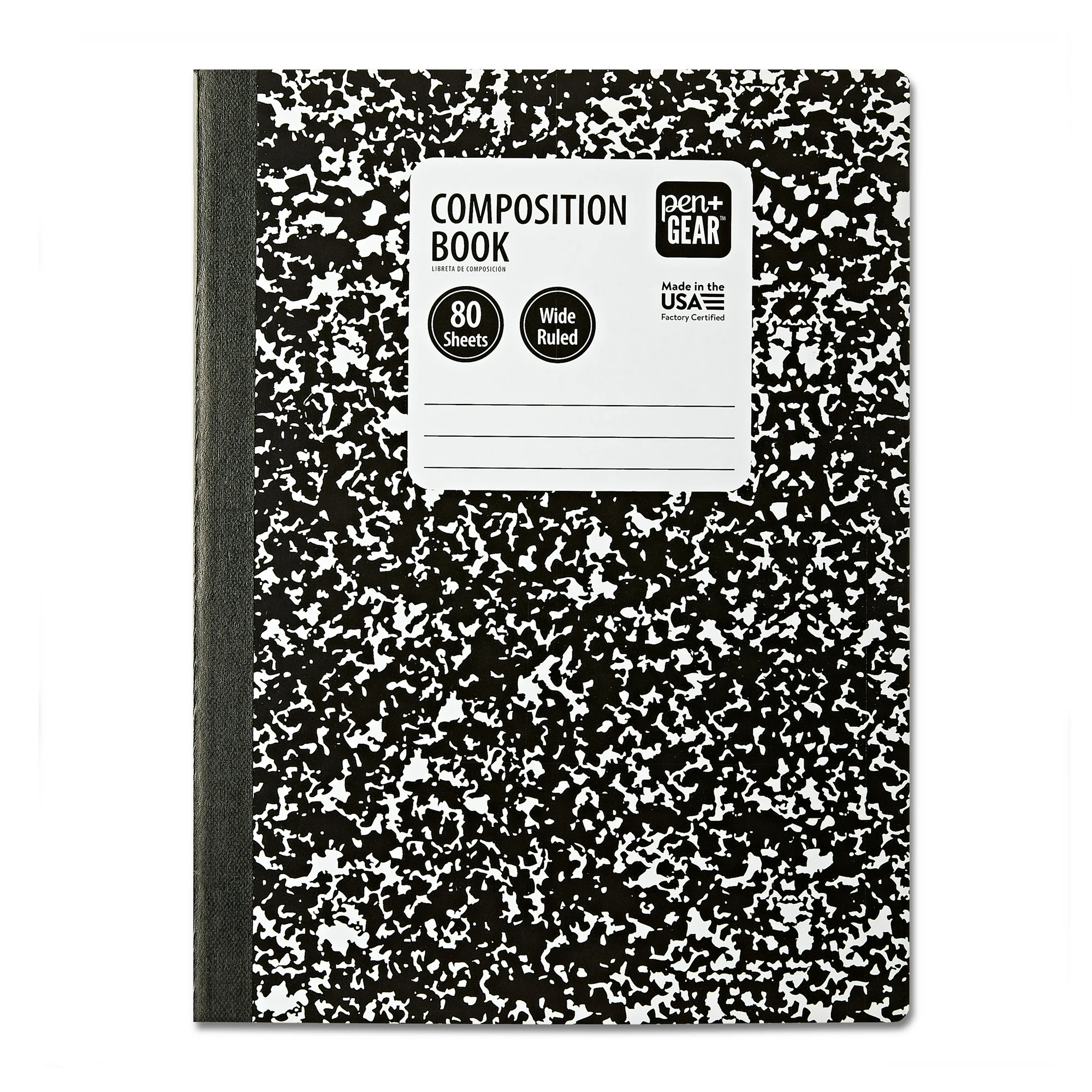 Pen+Gear Composition Books are a fun place to jot down lists, notes or homework. Each composition book features durable front and back covers that are flexible enough to lie flat when writing. These composition notebooks are a compact 7.5″ x 9.75″, so you can easily carry one in your backpack, laptop bag or tote bag. The permanently bound pages keep your writings secure while the sturdy covers help protect the pages from tears and spills. The composition book has 80 wide ruled pages to fill with secrets, meeting notes or even shopping lists. This composition book is manufactured with sustainable materials. The high-quality paper used in this notebook has a high brightness, and it originates from certified, sustainably managed forests. It is made in factories that operate only under the highest standards of compliance with social and sustainable practices. Pen+Gear Composition Books are perfect all-purpose notebooks.
